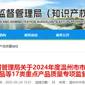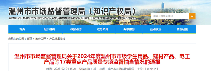 浙江省温州市市场监督管理局发布2024年度消防产品抽查结果