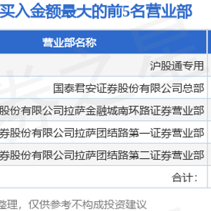 从龙虎榜公布的当日买卖数据来看,北向资金合计净卖出7078.64万元。陈小群等知名游资榜上有名。(知名游资陈小群一般指中国银河证券股份有限公司大连黄河路证券营业部席位,根据市场资料整理,仅供参考)