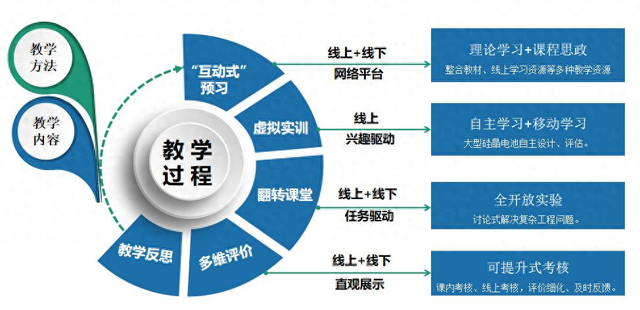 在传统教研转化、科研落地等产学合作理念基础上,创新产学合作理念,将产学合作范围由专业契合/对接扩大到社会全资源应用,通过高校提方案/需求,企业提供服务,校企优势互补,全方位、多渠道实现产学合作。在校企合作促进作用下,以产业为模板,建成全国高校第一个以太阳能电池制造为主线的冷态仿真与热态实验室操作相结合的体系,建设相关省级虚拟仿真一流课程4门,虚仿实验服务9门专业课程、8个专业。突破传统专业教育受益面约束,从教学层面实现多学科交叉。