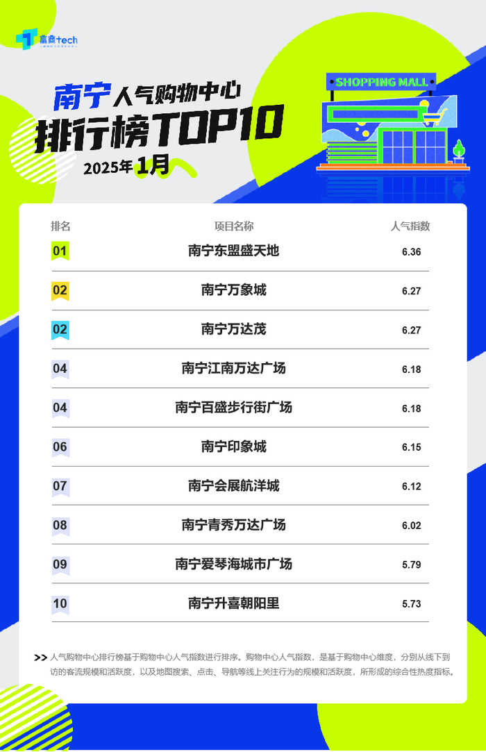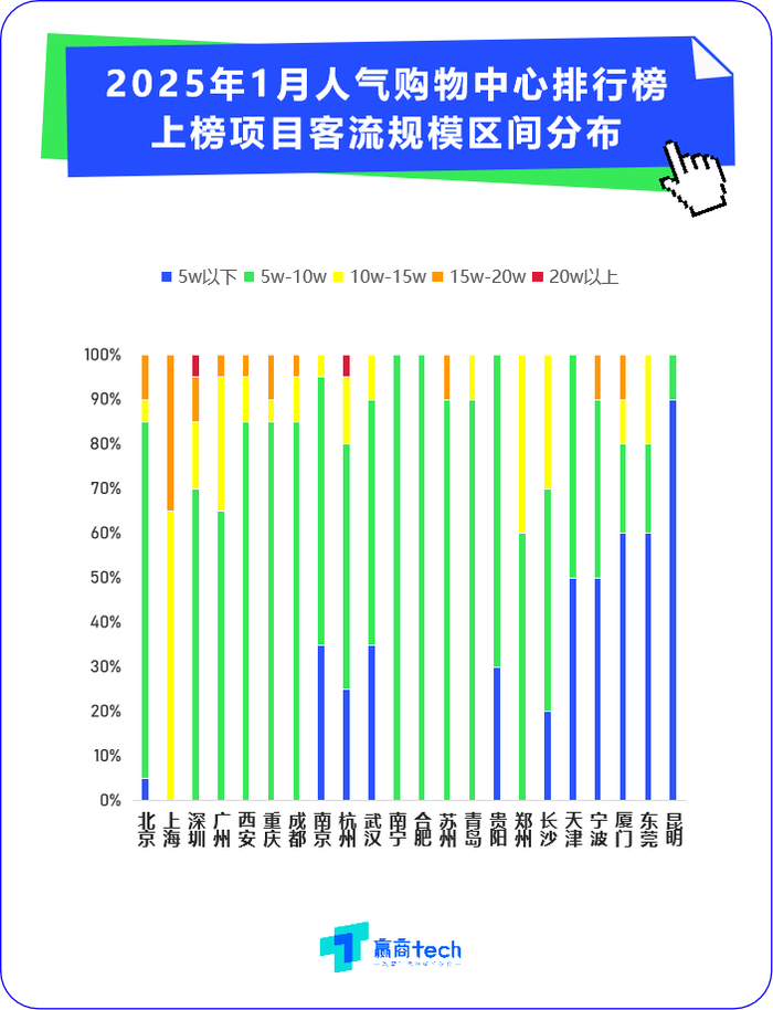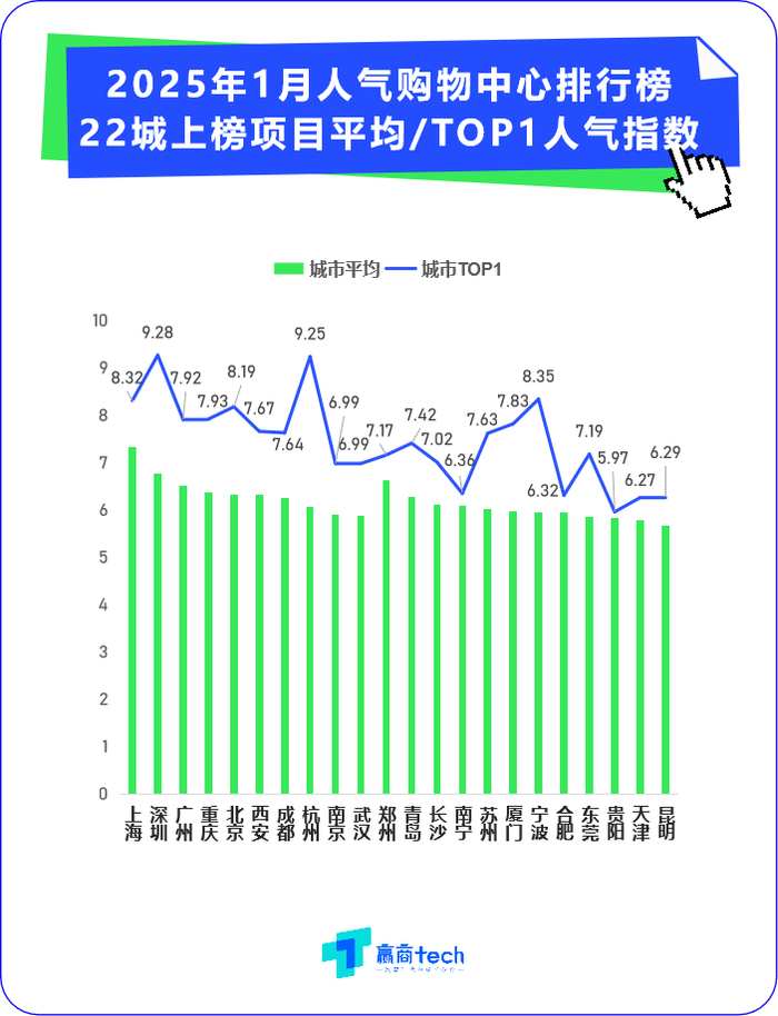 各地头部商场都有谁?为更全面呈现城市商业活力,赢商股份《2025年1月人气购物中心排行榜》,新增14个重点城市,出炉22个城市榜单,其中10城评选TOP20人气商场(北京/上海/深圳/广州/成都/重庆/武汉/杭州/南京/西安)、12城评选TOP10人气商场(天津/苏州/宁波/青岛/合肥/厦门/东莞/南宁/长沙/郑州/贵阳/昆明),上榜项目合计320个。
