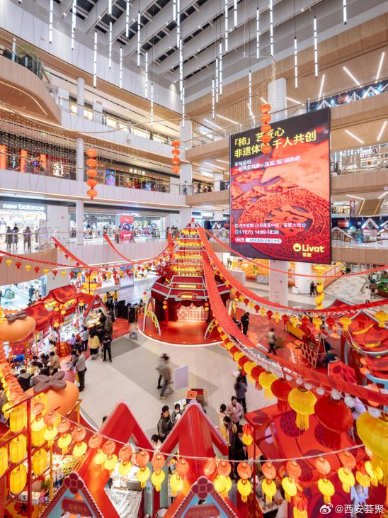 总建筑面积32万㎡、城南最大商业体——西安荟聚,与同属英格卡集团的宜家家居联动呈现,开业首日涌进23万人。场内设计巧妙融合北欧设计美学与本土文化,引入近400家品牌,构建多层次品牌矩阵,引入近10家超千平大店。1月,项目还打造了精美华丽的新春氛围感打卡点,还有集五福、财神巡游、鱼灯巡游及妙趣非遗体验。