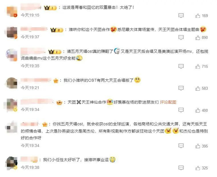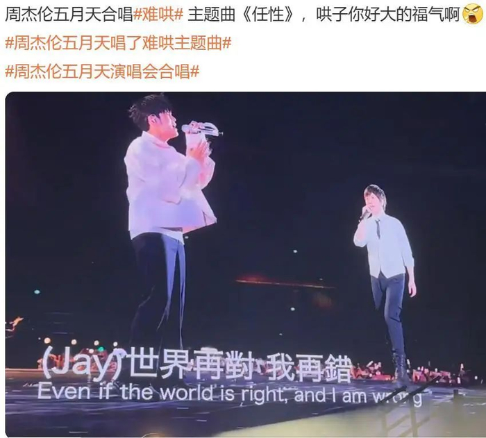 发布后不仅引发了翻唱热潮,还成为不少城市文旅推介视频的背景音乐。在2月22日晚,周杰伦一身粉色夹克惊喜现身五月天悉尼演唱会,双方不仅合唱了周杰伦的经典歌曲,还合唱了五月天的新歌《任性》,两大天王合唱《难哄》主题曲,不得不说这个剧也是蹭到了。