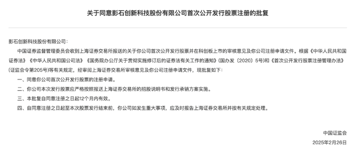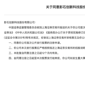 2 月 27 日晚间,证监会官网发布了同意影石创新IPO注册的批复,同意其注册申请。