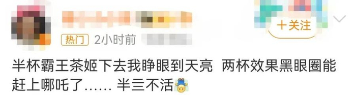 此次联名相关消息冲上热搜后,不少网友评论表示:“赶紧的,我要买”“安排上”。但也有人评论称:“霸王茶姬喝了真睡不着”“两杯效果,黑眼圈能赶上哪吒了”。