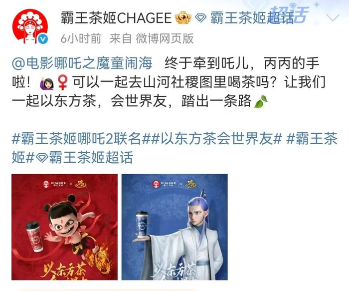 “喝两杯黑眼圈能赶上哪吒”!霸王茶姬官宣联名《哪吒2》,遭网友吐槽!库迪也官宣了…