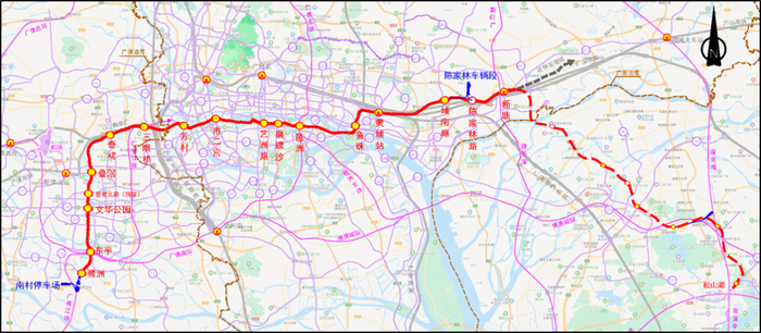 与2022年线路广州段社会稳定分析报告启动评估前公示的版本相比,广州段减少了3座车站,分别是:怡乐路、新洲、坭紫。佛山段减少了1座车站——澜石二路站,该站非换乘站,另外普君北路调整为预留车站。
