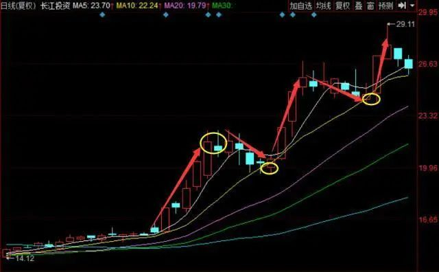 第二步:2-5日快速调整至关键支撑位(最好缩量调整)