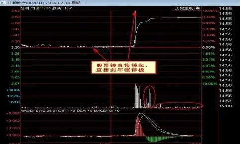旱地拔葱直线封板是指个股的盘中走势十分平静,涨跌幅度都很小。随后加速上攻,上涨速度十分快,股价犹如被突然拔起一般,仅仅经历了这一波上涨(或者上涨过程中稍有停顿),就封住了涨停板。