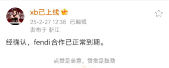 争议发酵后,Fendi删除了相关帖子和视频,但截至发稿,Fendi官方未发布正式声明,更没有致歉。值得注意的是,品牌代言人程潇迅速宣布与Fendi合作已到期,而近期官宣的代言人檀健次、宋雨琦则暂未回应。