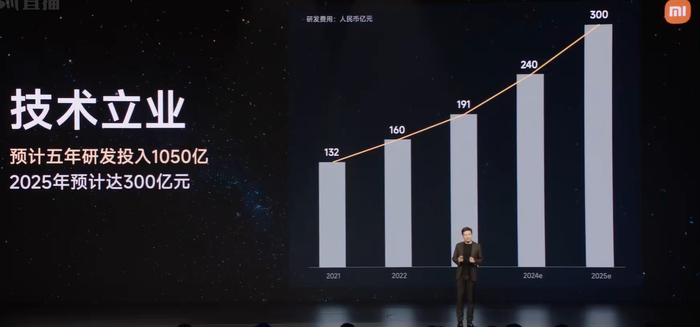 雷军:预计2025年研发投入达300亿元 AI及相关业务将占四分之一