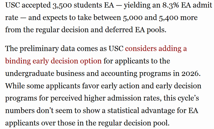 “南加州大学考虑将从2026Fall开始,在商科和会计专业新增ED轮次。”