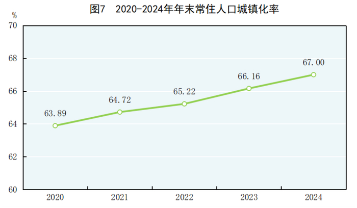 城乡融合和区域协调发展扎实推进。年末全国常住人口城镇化率为67.00%,比上年末提高0.84个百分点。分区域看,全年东部地区生产总值702356亿元,比上年增长5.0%;中部地区生产总值287156亿元,增长5.0%;西部地区生产总值287350亿元,增长5.2%;东北地区生产总值63451亿元,增长4.4%。全年京津冀地区生产总值115394亿元,比上年增长5.2%;长江经济带地区生产总值630228亿元,增长5.4%;长三角地区生产总值331691亿元,增长5.5%。粤港澳大湾区建设、黄河流域生态保护和高质量发展等区域重大战略实施取得新成效。