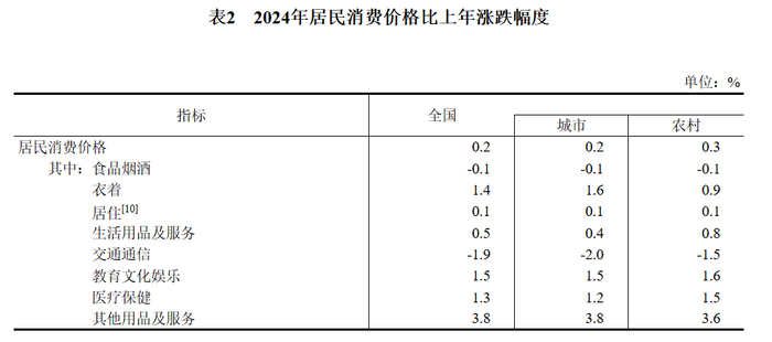 全年居民消费价格比上年上涨0.2%。工业生产者出厂价格下降2.2%。工业生产者购进价格下降2.2%。农产品生产者价格下降0.9%。12月份,70个大中城市中,新建商品住宅销售价格环比上涨的城市个数为23个,持平的为4个,下降的为43个;二手住宅销售价格环比上涨的城市个数为9个,持平的为1个,下降的为60个;新建商品住宅销售价格同比上涨的城市个数为2个,下降的为68个;二手住宅销售价格同比下降的城市个数为70个。