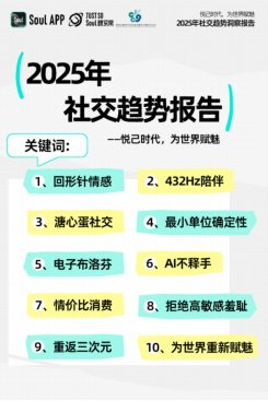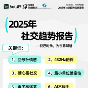 Soul App创始人张璐团队和复旦大学相关团队联合发布的《2025年社交趋势报告》,通过对“回形针情感”“432Hz陪伴”以及“溏心蛋社交”等现象的剖析,不仅揭示了Z世代在数字化浪潮下独特的社交心理和行为模式,也为社会各界更好地满足Z世代需求、推动社会发展提供了参考。