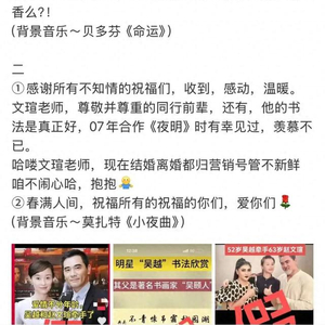 至于部分网友编写的“吴越失恋小作文”,以及网上流传的“吴越书法作品”,她也再次进行了澄清。