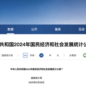 2月28日,国家统计局发布《中华人民共和国2024年国民经济和社会发展统计公报》。