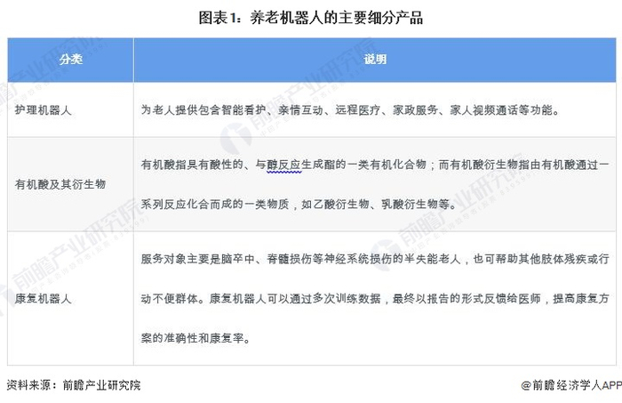 养老机器人隶属于服务机器人产业中的细分行业,主要分为护理机器人、康复机器人和陪伴机器人三大类。其中,护理机器人主要用于日常生活照料,如智能护理床、移动护理椅等;康复机器人则专注于运动治疗和健康管理;陪伴机器人则提供情感支持和家庭安防监控。