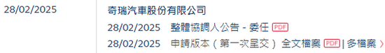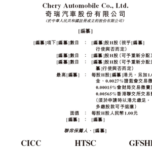 2025年2月28日,来自安徽芜湖的奇瑞汽车股份有限公司 Chery Automobile Co., Ltd.(简称“奇瑞汽车”)在港交所递交招股书,拟在香港主板上市。