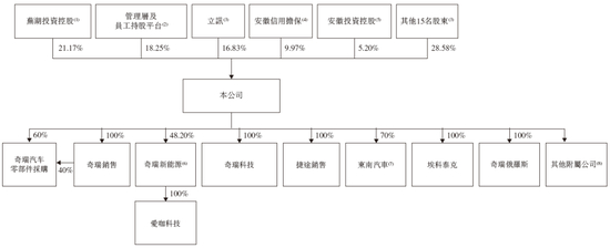 招股书显示,奇瑞汽车在上市前的股东架构中,