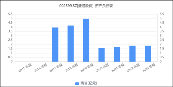 高增长的背后,是高溢价带来的高商誉。截至2019年,盛通的商誉账面价值约为4.97亿元,约占当年总资产(2019年:26.69亿元)的1/5。