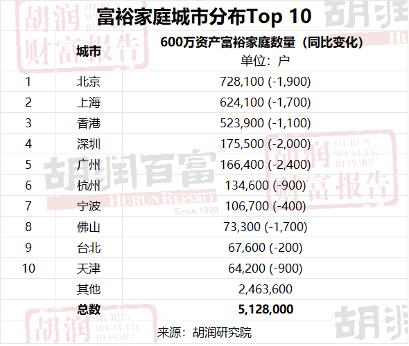 高净值家庭城市分布Top10