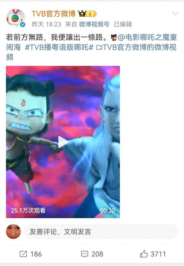 TVB将播《哪吒1》的消息一出,香港市民纷纷表示期待粤语配音版《哪吒1》给影片带来独特韵味,称“坐等观看”。同时,许多粤语区网友在各大社交平台上发布自己为《哪吒2》设计的创意粤语配音片段,掀起又一波“二创”高潮。