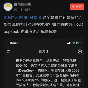 慈星股份也在互动平台明确表示:关注到近期部分社交平台上有传言称本公司或公司下属分、子公司参与DeepSeek融资。经核实,上市公司及其子公司均未参与DeepSeek的投资。敬请广大投资者注意甄别网络信息源头,理性判断,谨慎投资,注意投资风险。