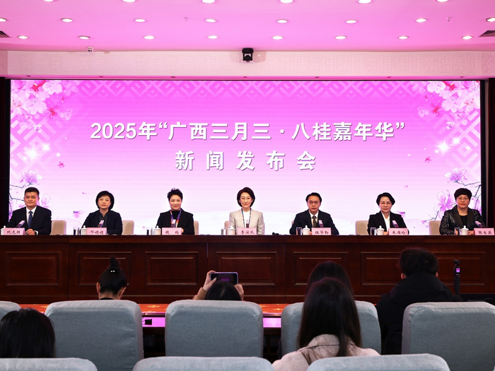 记者从会上获悉,今年活动以“广西三月三 潮玩邀你来”为主题,活动时间从3月31日至4月28日,自治区层面将开展9项重点活动,具体是:“广西三月三·八桂嘉年华”开幕式活动、“四季村歌”主会场活动和启动仪式、国际民歌邀请赛、《新民歌大会》第三季、图书《博物馆里的“三月三”》、视听中国“石榴花开向未来”三月三新视听作品大赛、“潮动三月三·抖音足球嘉年华”、全媒体时尚创意节目《万物秀》、“广西三月三·八桂嘉年华”闭幕式暨“2025大地飞歌”。