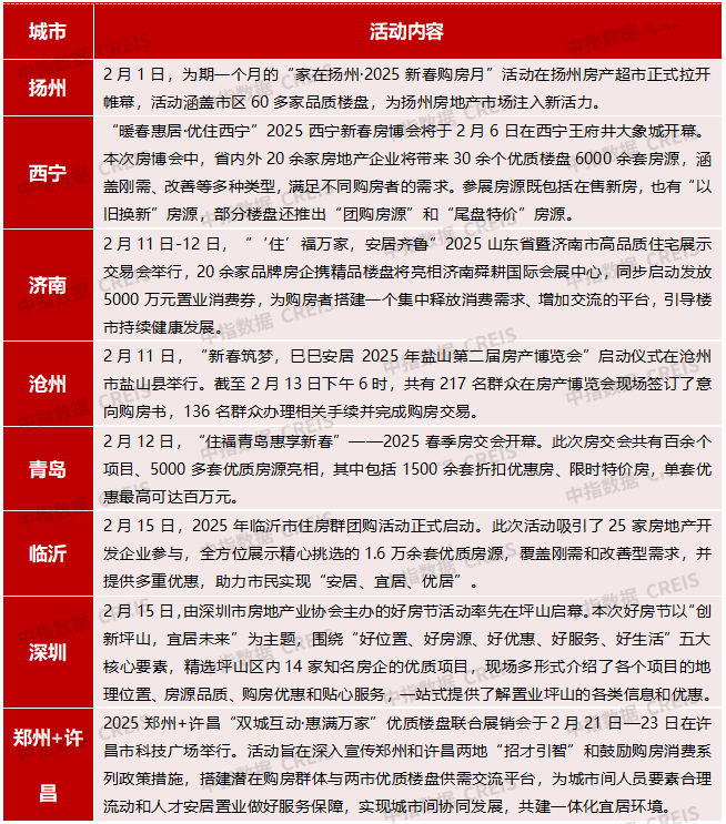 表:2025年2月部分重点城市楼市促销活动