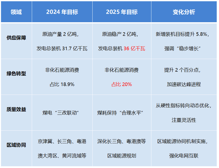相较于2024年,《2025年能源工作指导意见》(以下简称《指导意见》)在总体思路上呈现四大核心升级: