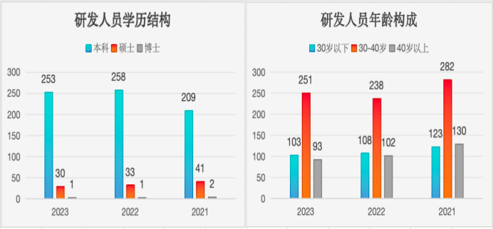 更深层问题在于人才结构,2021-2023年葵花药业研发人员数量逐年缩减,分别为535人、448人和447人,而在2023年葵花药业同期研发人员中,仅有1位博士学历,硕士及以上学历仅占6.93%,而同期华润三九研发人员硕士及以上占比45.5%。