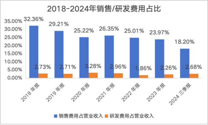 但过高的销售费用率对企业的可持续发展不利,一定程度上可能挤占企业研发投入和管理费用等。