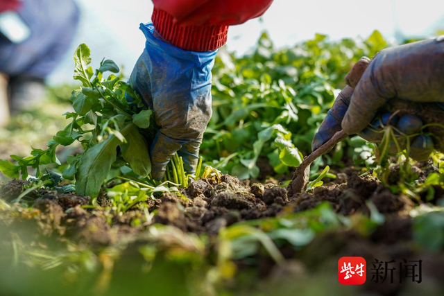 叮咚买菜春菜基地内,新鲜春菜正被采摘