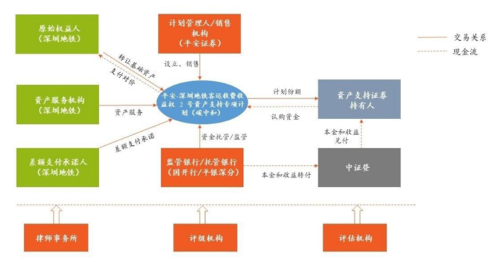 2025年2月27日,深圳市地铁集团有限公司作为原始权益人的“平安-深圳地铁客运收费收益权2号资产支持专项计划(碳中和)”在深交所成功发行!项目规模20亿元,其中优先档19亿元,AAA评级,期限3+3+3+3+3+3年,不超过18年,每3年末开放期回售/调整票面,发行利率2.26%;次级1亿元,无评级。基础资产类型收费收益权(深圳2号线地铁客运收费收益权),计划管理人平安证券,销售机构平安证券、中金公司、中信证券、国信证券。