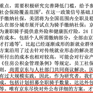 而美团、饿了么也并非是在京东之后才开始为骑手缴纳社保,而是之前。