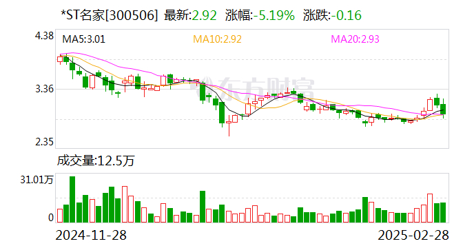 2月28日,*ST名家(300506)发布公告,宣布与重整投资人签署《预重整投资协议》。公告中提到,公司于2024年5月17日收到债权人申请重整的函件,深圳中院已决定于2024年7月29日启动公司的预重整程序。此次重整投资人选定新余领九投资管理中心(有限合伙)为正选单位,预计将为公司带来资金支持。