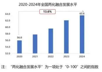 实数融合加快数字乡村建设。2024年,我国农村数字基础设施有序推进,现代信息技术与农业深度融合,赋能农业现代化发展全流程,全国农业科技进步贡献率达63.2%,农作物耕种收综合机械化率达74.3%,大田种植信息化率达26.4%;农村网络零售额与农产品网络零售额分别增长6.4%和15.8%,农村地区在线教育使用率达24.0%,全国70%的卫生院已经和上级医院建立远程医疗协作关系。