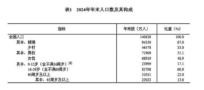 [6]2024年年末,0—14岁(含不满15周岁)人口为22240万人,15—59岁(含不满60周岁)人口为87557万人。