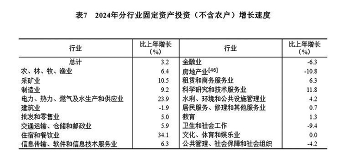 [41]由于投资统计制度方法改革、第五次全国经济普查数据修订、统计执法检查等因素,2024年固定资产投资相关指标增速按可比口径计算。