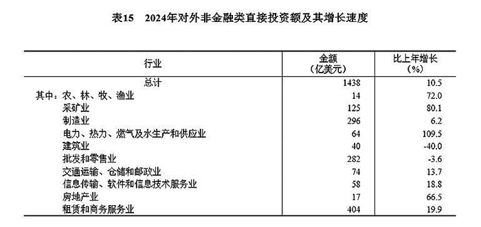 全年对外非金融类直接投资额10245亿元,比上年增长11.7%,折1438亿美元,增长10.5%。其中,对共建“一带一路”国家非金融类直接投资额2399亿元,增长6.5%,折337亿美元,增长5.4%。
