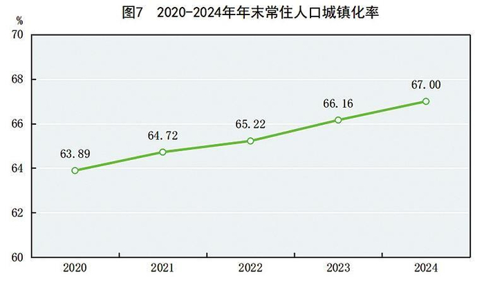 城乡融合和区域协调发展扎实推进。年末全国常住人口城镇化率为67.00%,比上年末提高0.84个百分点。分区域看20,全年东部地区生产总值702356亿元,比上年增长5.0%;中部地区生产总值287156亿元,增长5.0%;西部地区生产总值287350亿元,增长5.2%;东北地区生产总值63451亿元,增长4.4%。全年京津冀地区生产总值115394亿元,比上年增长5.2%;长江经济带地区生产总值630228亿元,增长5.4%;长三角地区生产总值331691亿元,增长5.5%。粤港澳大湾区建设、黄河流域生态保护和高质量发展等区域重大战略实施取得新成效。