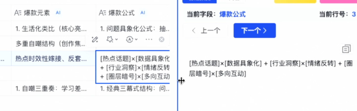 无须对模型进行二次调教,只需用自然语言输入一句指令,让它模仿内容主编来判断选题价值,一个选题管理模板就做完了。