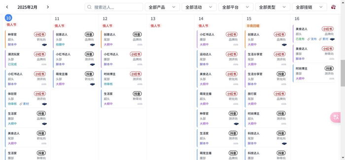 亚朵星球研发出的飞书多维表格插件——达人发布日历