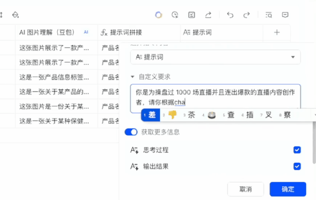 面对商品详情图,就由视觉更强的豆包来抓取产品信息,并按照成分、使用人群、品质等进行拆分。做完信息的第一步预处理后,再交给擅长文本创作的 DeepSeek 生成口播文案。