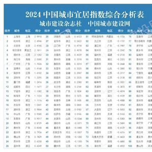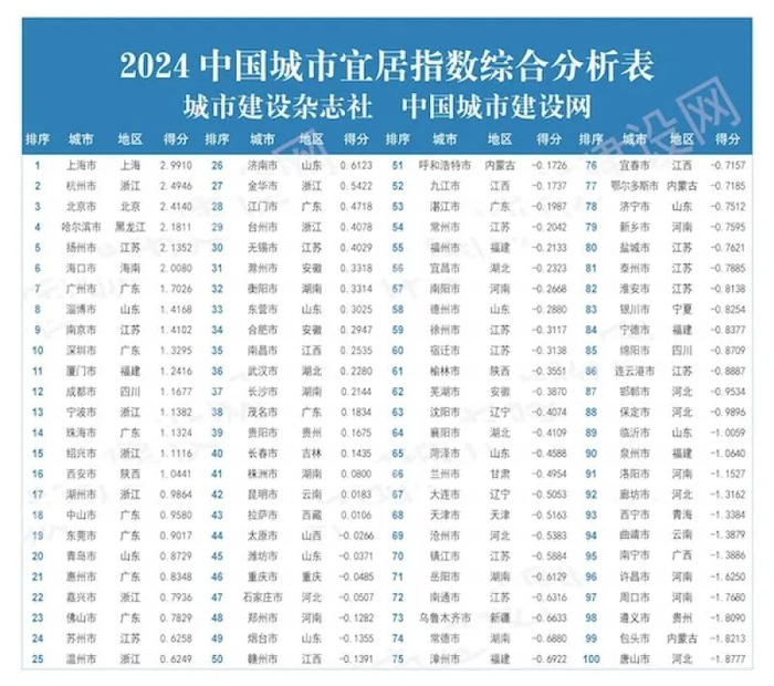 2024中国城市宜居指数发布:上海、杭州居首,哈尔滨、扬州、淄博进入全国前十