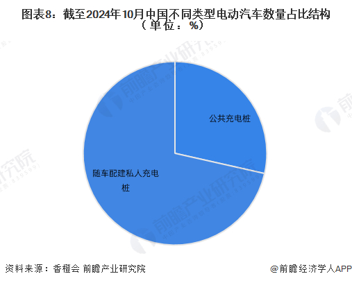 截至2024年10月,随车配建私人充电桩数量超过800万台,占比超过七成;公共充电桩数量超过300万台,占比不足三成。