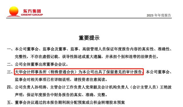 但在2023年财报中,大华会计师事务所出具了保留意见的审计报告,主要涉及包括,一是截止2023年年报批准报出日,公司控股股东东方集团有限公司在龙江银行股份有限公司哈尔滨龙腾支行4.54亿流动资金贷款到期未偿还、正在与银行协商偿付安排或者展期;二是对于房地产合作开发项目的未来可收回金额存在较大不确定性。