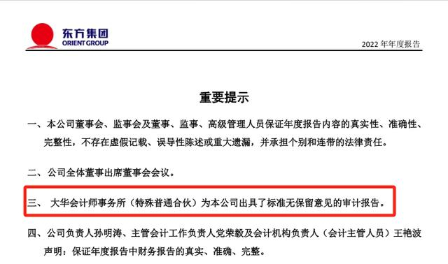 东方集团相关财报显示,2020年至2023年的4年财报审计机构为大华会计师事务所,其中在2020年至2022年的3年财报中,大华会计师事务所在均出具了标准无保留意见的审计报告。