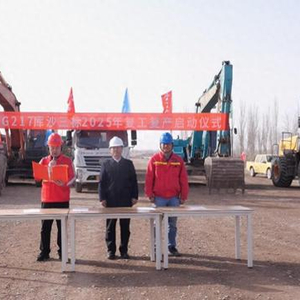 当日,走进国道217线库车至沙雅公路工程第三标段复工现场,工程车、挖掘机、铲车整齐排列、蓄势待发,80多名工人精神抖擞、信心满满,跃跃欲试。随后,在机器的轰鸣声和震耳的鞭炮声中,沙雅县交通运输局负责人宣布国道217线库车至沙雅公路工程全面复工。