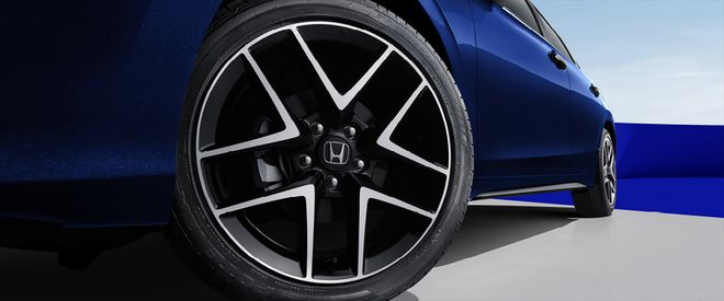 2025 款东风本田思域延续了2024 款海外版思域车型设计,前包围两侧取消雾灯,以纵向布局的通风口代替,该车采用了与思域 TYPE R 相似的熏黑蜂窝状进气格栅,使用溜背式造型和上扬的立体双腰线,提供 16/17/18 英寸轮毂。